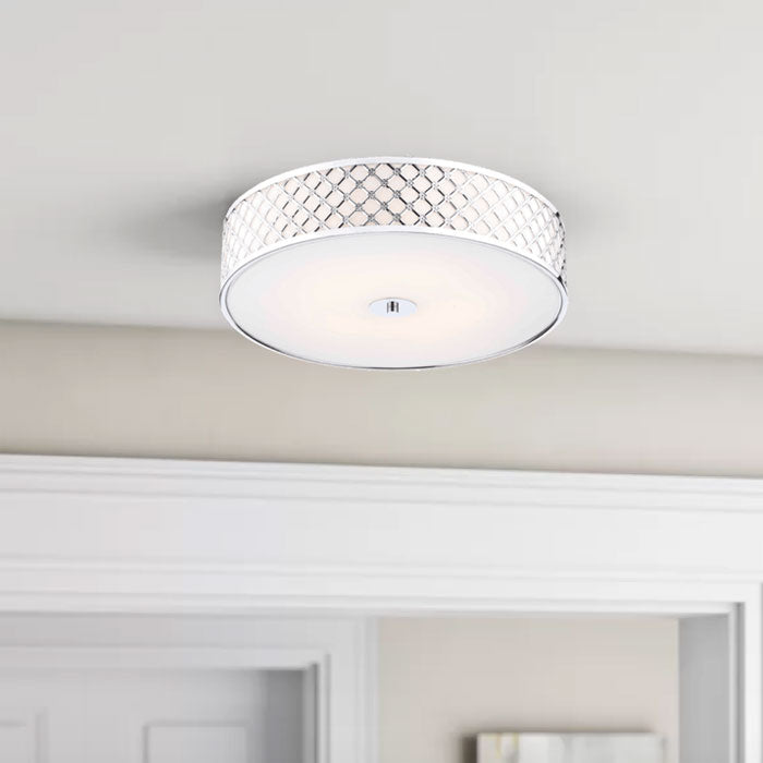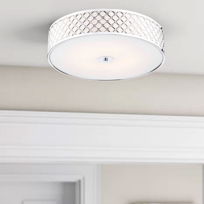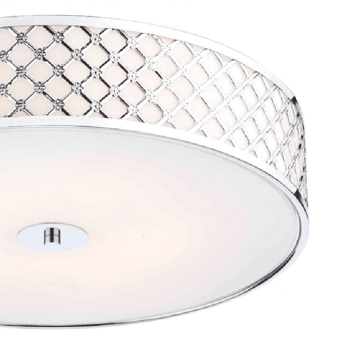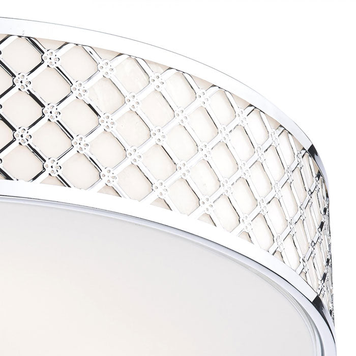 This classy flush ceiling light is finished in polished chrome. It has an opaque glass diffuser and projects a powerful light due to it's five light bulbs.