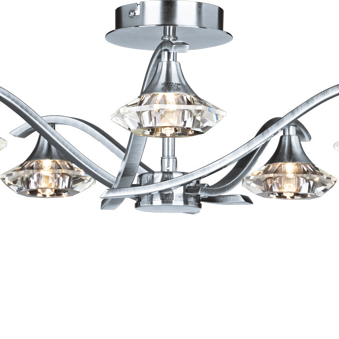 In search of a modern ceiling light? This semi-flush ceiling light has a modern feel with five graceful arms which curve towards an individual bulb holder.