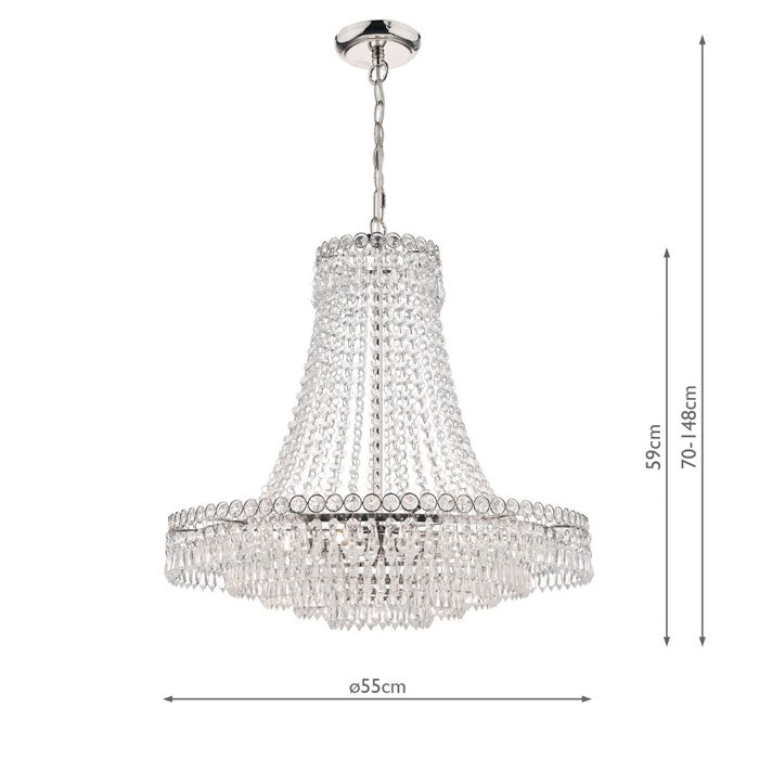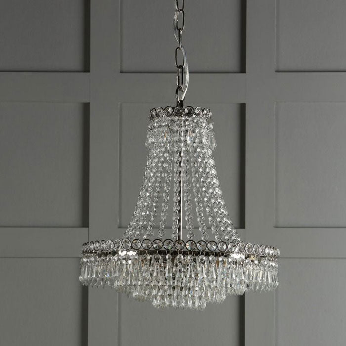 Also available is the smaller Laura Ashley Enid 5 Light Chandelier Polished Nickel & Cut Glass LA3691119-Q. Simply search 'Enid' in the search bar.