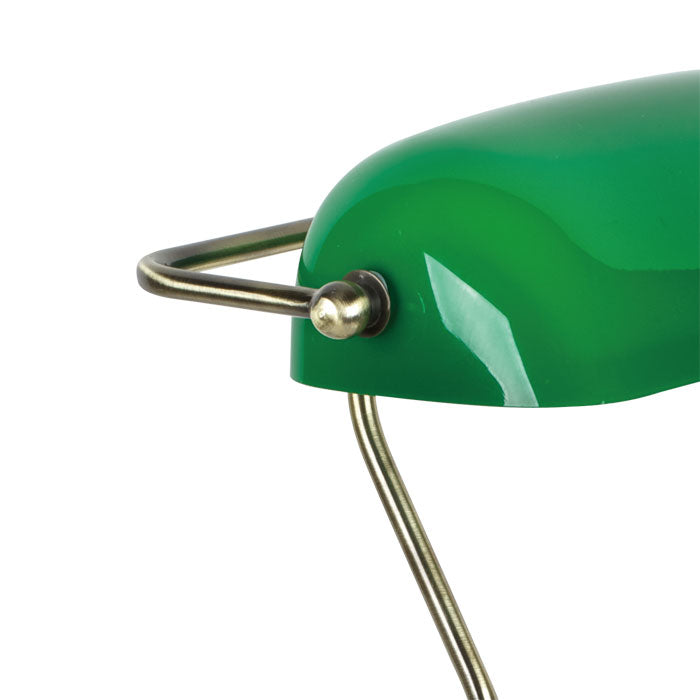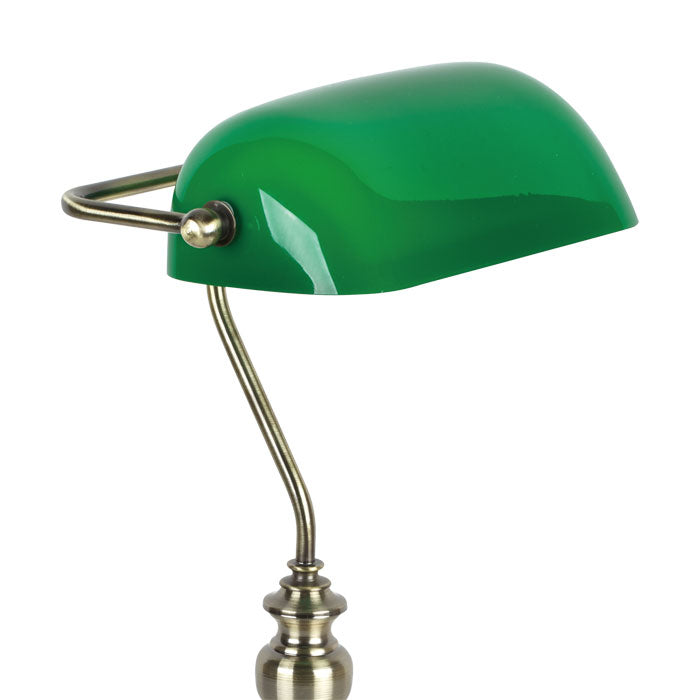 The antique brass effect frame is traditional in appearance and is complemented by the classic green shade which can swivel.