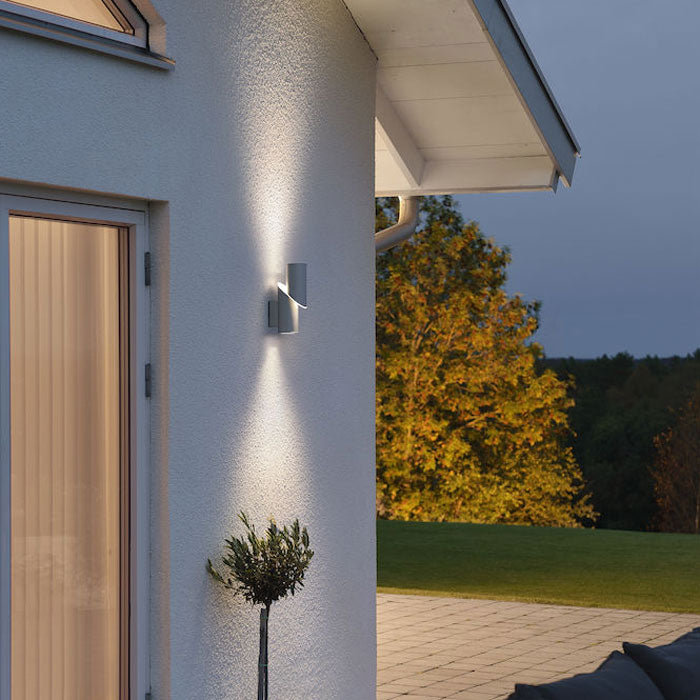 This LED outdoor wall light is made from aluminium and has a strong modern design.