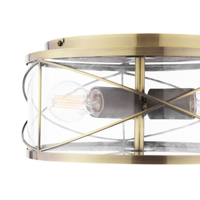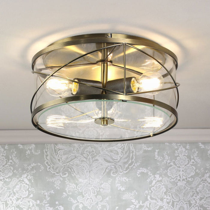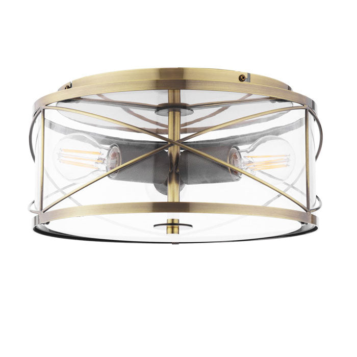 Laura Ashley Beckworth 3-Light Flush Ceiling Light – Antique Brass & Glass