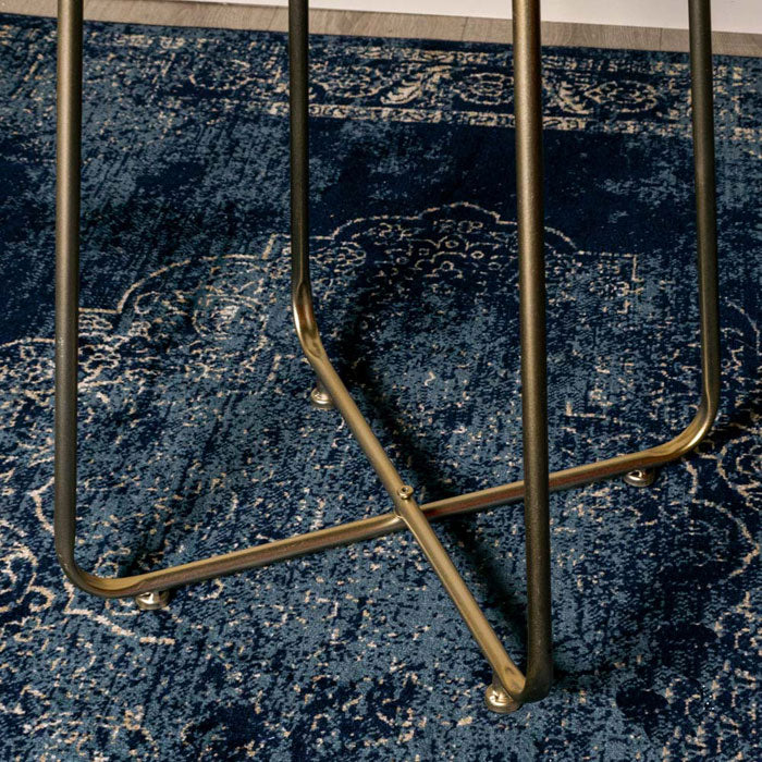 To give the table a modern feel it has champagne metal legs, which cross over each other to form the base.