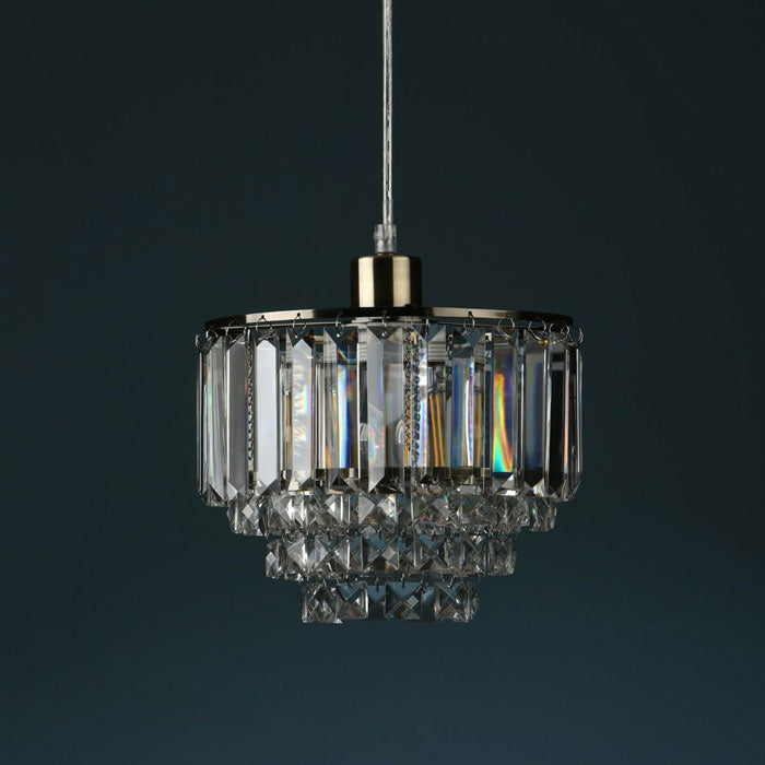 The Vienna Easy Fit Pendant Lampshade features a mesmerising crystal design that creates a captivating display of light. The antique brass finish adds a vintage charm that complements a variety of interior styles, making it a versatile choice for your home.