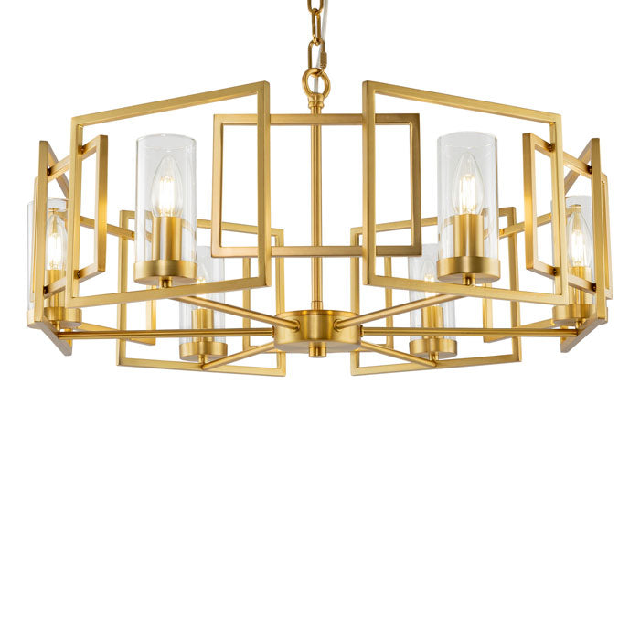 Featuring six lights the metal frame is gold in colour and made in a uniquely shaped design to create a truly contemporary look that wouldn't go out of place in a designer hotel.