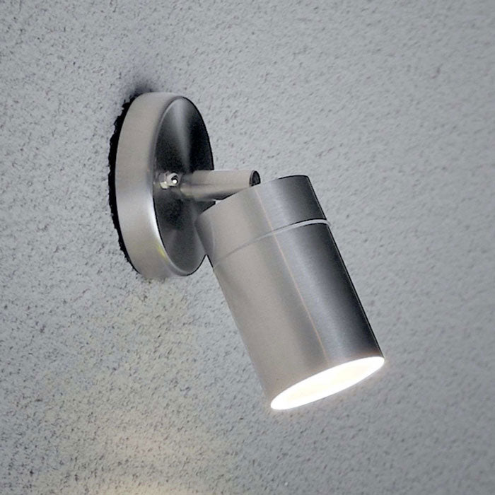 Manufactured to a high-quality it is finished in stainless steel and is sure to provide a welcoming source of light. The spot light can be adjusted in two directions to provide light where you need. Adjustable 90 degrees vertical and through 320 degrees round.