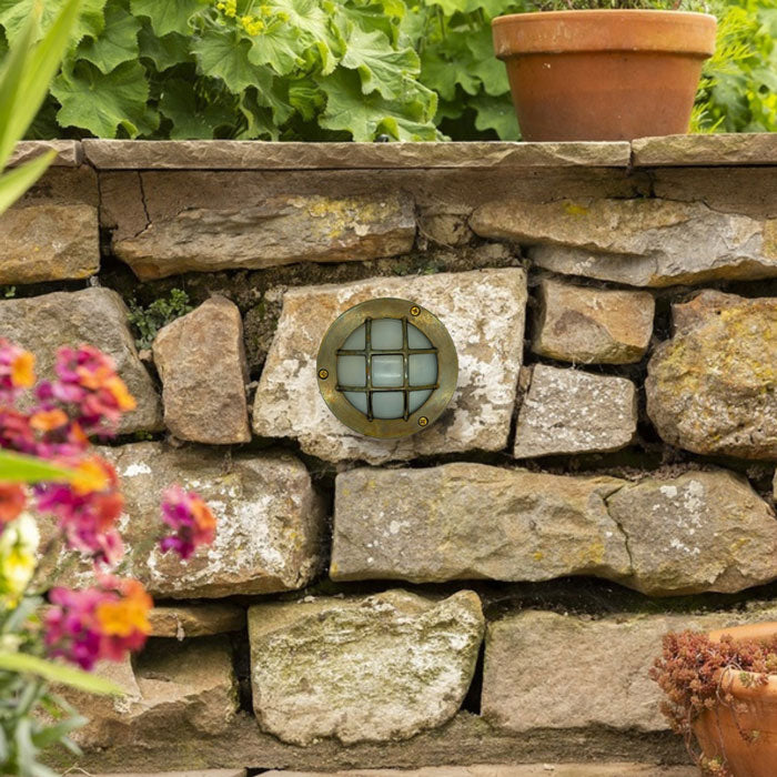 The Navigator Compact Mini Circular Bulkhead in Antique Brass (09044) brings a refined, vintage appeal to any outdoor setting, effortlessly blending timeless design with practicality. The rich, antique brass finish lends a sophisticated, heritage-inspired look, making it the ideal choice for those looking to enhance their outdoor spaces with a touch of classic elegance. Compact yet highly functional, this mini bulkhead light is perfect for illuminating small areas such as entranceways, patios, or garden pathways.
