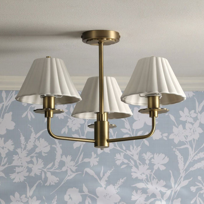 Introduce a sophisticated glow to your living space with the Laura Ashley 3 Light Semi Flush Ceiling Light. Finished in a rich antique brass, this ceiling light features charming scalloped porcelain shades that gently soften the light, creating a warm and welcoming atmosphere. Perfect for bedrooms or living rooms, it combines timeless style with subtle contemporary details to suit a variety of interiors.