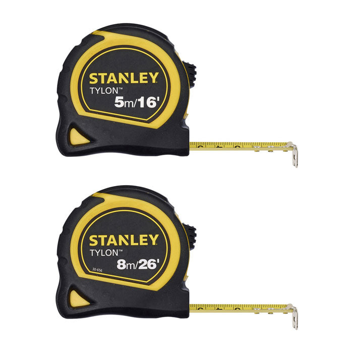 This twin pack of measuring tapes made by Stanley consists of the 1-30-696 5m and 1-30-656 8m measuring tapes.