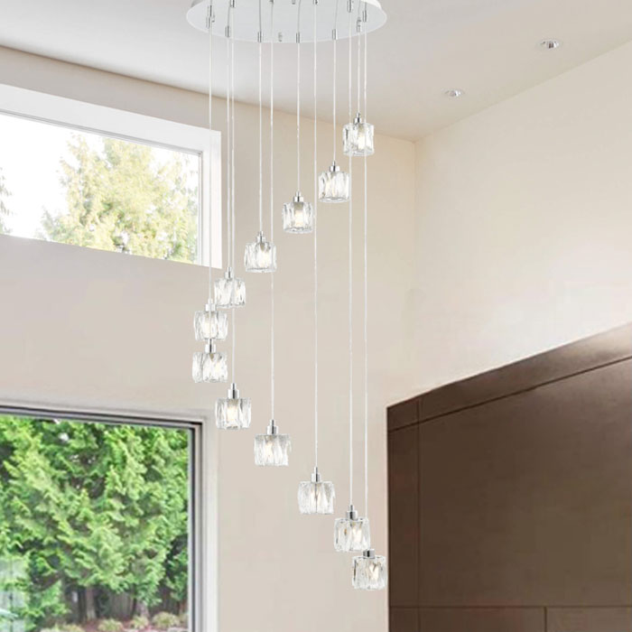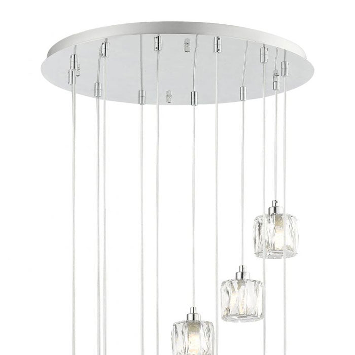 Are you wanting to make an impression or statement in your home that looks both modern and sleek? Then this stunning multi drop pendant light could be the one! Featuring twelve faceted crystal cubes which cascade downwards to form a spiral effect that looks great by both day and night.