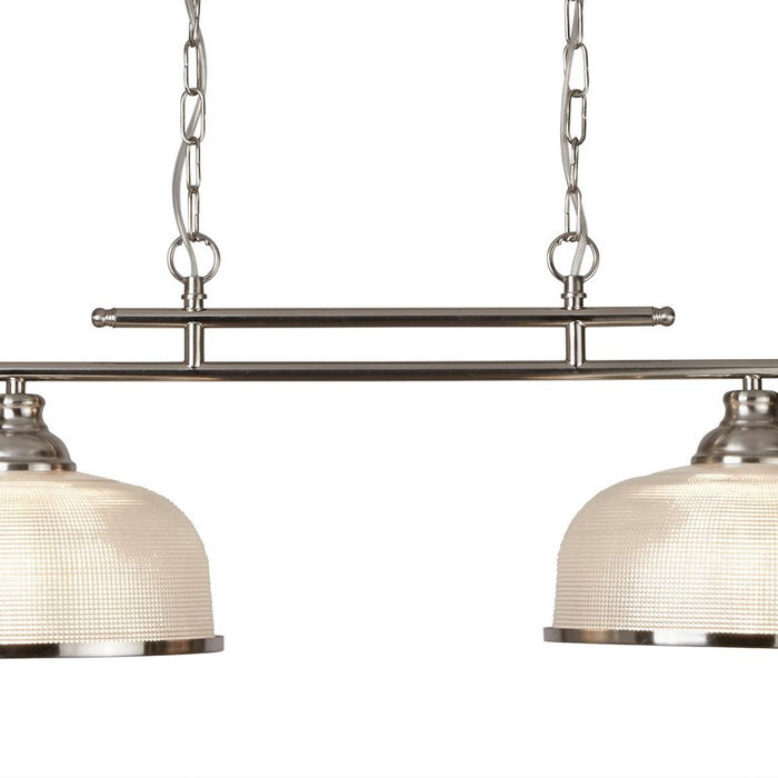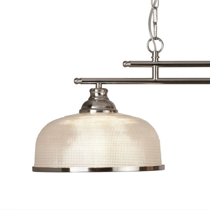 Featuring holophane glass shades you will appreciate the warming glow that comes from the fitting in the evening to brighten your kitchen, ideally above a breakfast bar island, kitchen island or dining table.