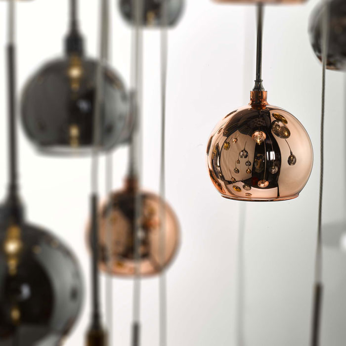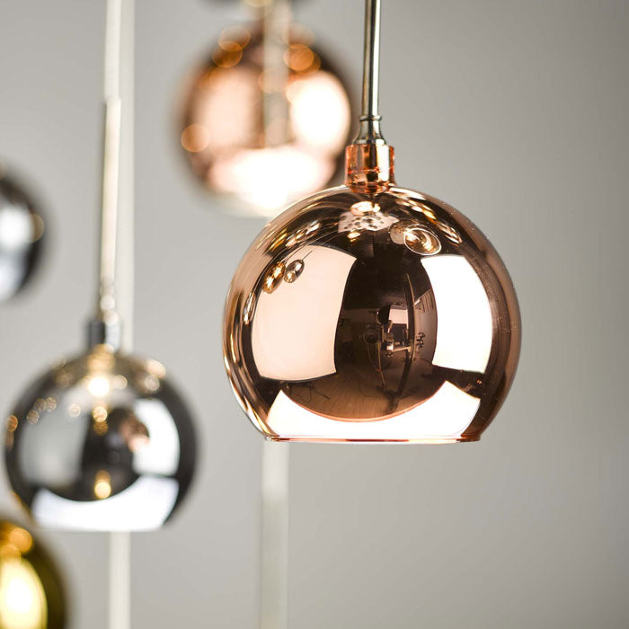 The beautiful collection of high shine electro-plated glass shades come in varying shades of copper.