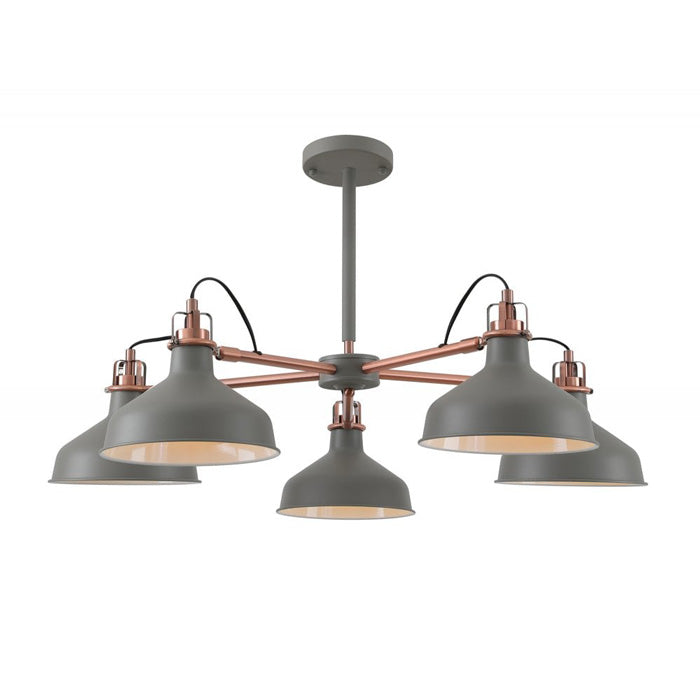 This 5-light pendent with textured grey and copper finish would be perfect over a dining table or within your living space.