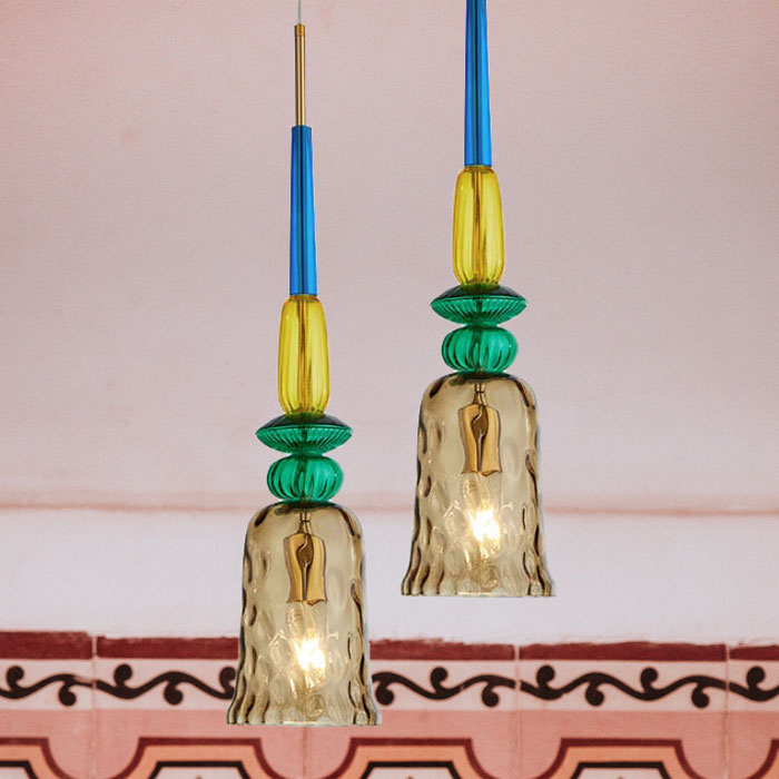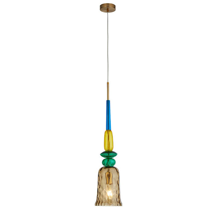 This colourful single ceiling pendant has a unique look and features a bronze ceiling plate with clear cable.