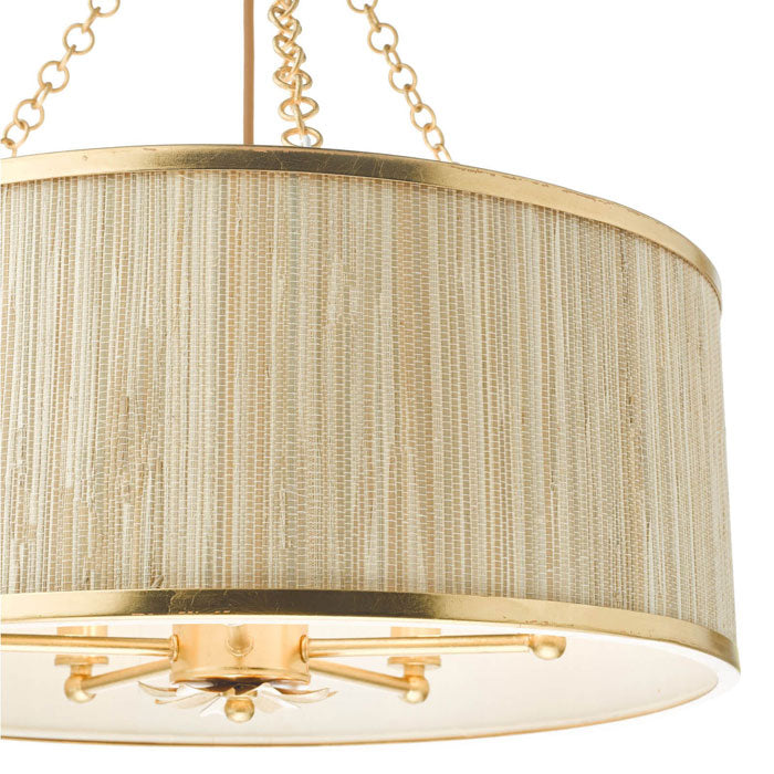 The Fenella 5 Light Pendant is a luxurious lighting fixture that is sure to enhance any home decor. This contemporary drum-shaped pendant features a beautifully crafted linen-lined shade complemented by natural seagrass accents, adding a touch of organic elegance to your space.