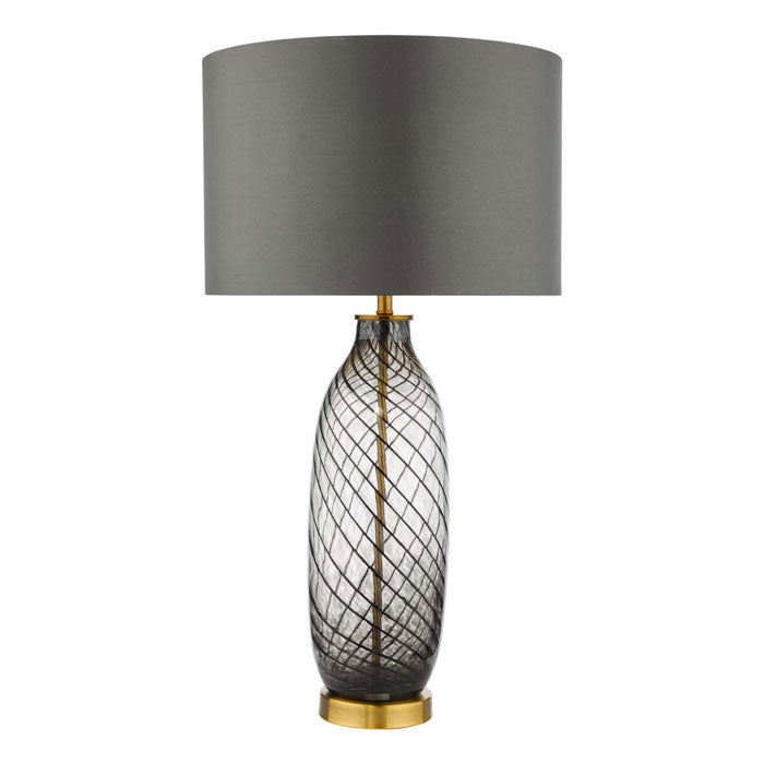 This glass table lamp is free blown meaning that the pattern size and shape may vary a little. Comes complete with a dark grey faux silk shade with matching lining.