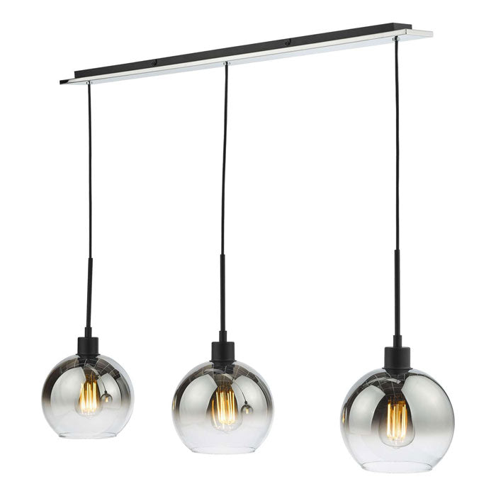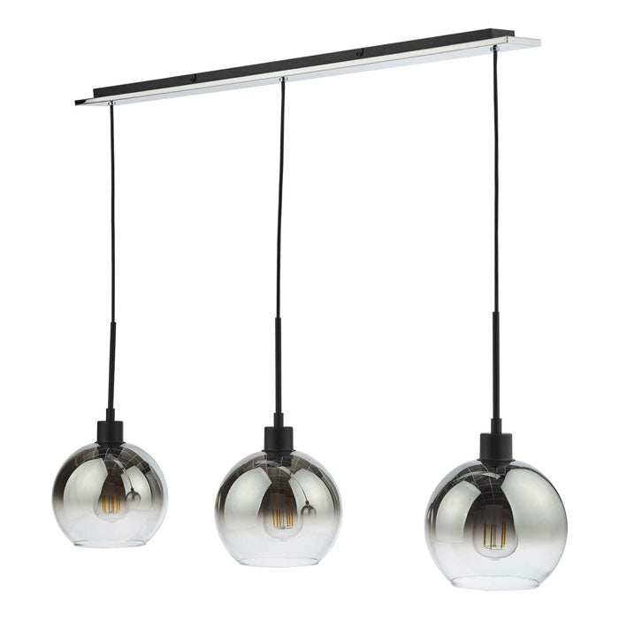 Stylish in appearance this bar pendant features three, large glass shades in a highly mirrored smoked/clear ombre finish. Simple in design this bar pendent exudes contemporary flair and would look great in a range of settings, including over a dining table or breakfast area, to name but a few ideas.